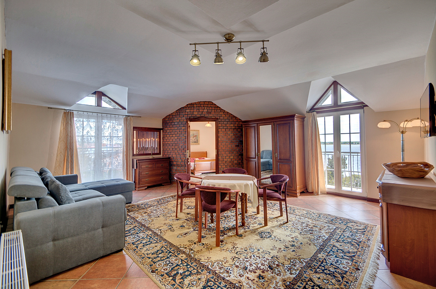 Do dyspozycji naszych go艣ci oferujemy pokoje 1-,2-,3-,4-osobowe oraz pokoje typu studio i apartamenty. Wszystkie pokoje wyposa偶one s膮 w 艂azienk臋, TV, czajnik, r臋czniki. Wi臋kszo艣膰 pokoi posiada balkony. Pokoje o podwy偶szonym standardzie dodatkowo posiadaj膮 lodówk臋 i balkon od strony po艂udniowej z widokiem na ogród i jezioro. Apartamenty sk艂adaj膮ce si臋 z 2-3 pokoi, 艂azienki, mini aneksu kuchennego i balkonu od strony po艂udniowej z pi臋knym widokiem na wod臋, zapewni膮 Pa艅stwu komfort wypoczynku i wspania艂e widoki.