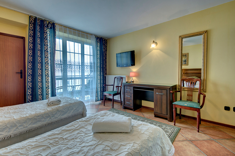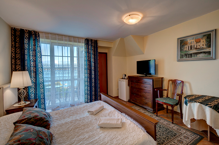 Pokoje 2-osobowe o podwy偶szonym standardzie posiadaj膮 艂o偶e ma艂偶e艅skie lub 2 艂ó偶ka, 艂azienk臋, r臋czniki, czajnik, kubeczki oraz balkon z widokiem na wod臋 i lodówk臋.